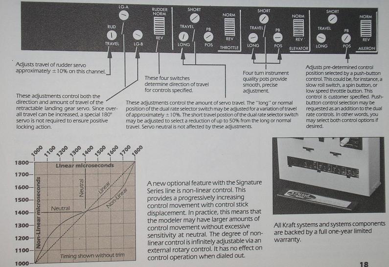 Note; The Signature Series transmitter is the only Kraft radio that has landing gear Ch #7 instead of # 5.